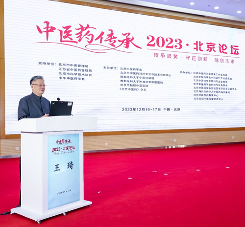 热烈祝贺2023中医传承·北京论坛成功举办,孟河医派“新时代”南北医家融合发展工程启动仪式2023年12月16日,由北京市中医管理局、江苏省中医药管理局、北京市科学技术协会、中华中医药学会支持,北京中医药学会、北京市中医药对外交流与技术合作中心、首都医科大学中医药学院等单位共同主办的“2023中医药传承·北京论坛”盛大召开。大会以“传承岐黄·守正创新·融创未来”为主题。中国工程院院士、国医大师王琦教授,北京市卫生健康委党委委员、北京市中医管理局局长、一级巡视员、北京中医药学会会长屠志涛,国家中医药博物馆馆长杨荣臣,北京市中医管理局副局长、二级巡视员李德娟,中华中医药学会副秘书长马骏,北京语言大学副校长张宝钧,江苏省卫生健康委中医综合处处长石健峰、中医科教处副处长汪海波,首都医科大学附属北京中医医院院长刘清泉,首都医科大学中医药学院院长王伽伯,河北省中医药科学院原副院长曹东义,北京中医药大学医疗管理处处长周春宇,中国中医科学院教育管理处副处长毛超一,北京市通州区卫生健康委副主任王峰等领导和专家出席大会。会议线下线上形式举办,4万余人线上同步观看。本学会会长顾书华应邀参加了本次会议。