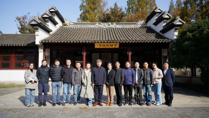 九三学社常州市委会3个专委联合到丁甘仁故居暨孟河医派书院调研孟河医派传承保护工作2024年11月27日,由九三学社常州市委会副主委、市科技局副局长白冰天带队,科技创新专业委员会、医疗卫生专业委员会、新能源新材料专业委员会一行联合到丁甘仁故居暨孟河医派书院及广益中医医院(孟河医派名医堂)实地调研孟河医派传承保护工作。本学会会长顾书华、本学会顾问,原常州市新北区卫健局局长汪中良等陪同参加本次调研。 调研组一行首先参观了位于孟河镇的丁甘仁故居暨孟河医派书院,常州孟河医派传承学会会长顾书华向调研组一行介绍了孟河医派的起始渊源、医家事迹、学术特色及其传承发展等情况。